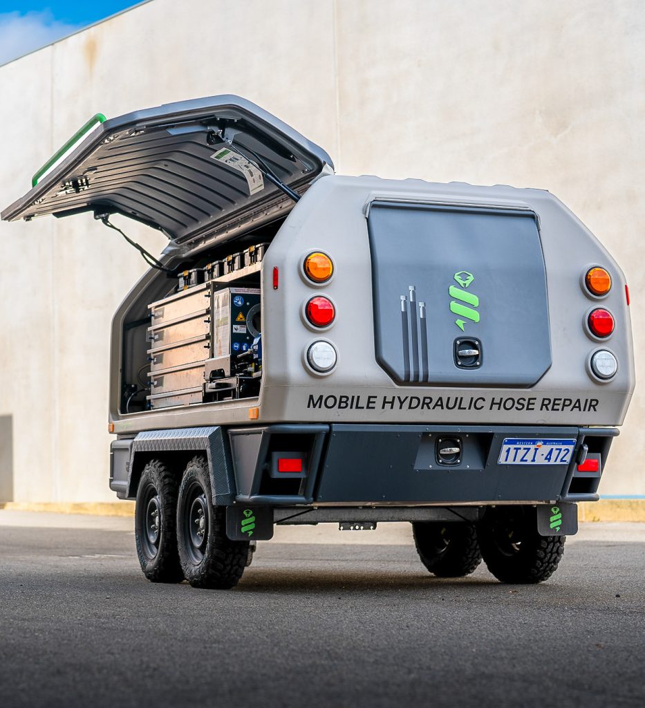 Peak Mechanical WA has recently invested in a high tech mobile hydraulic service trailer which is equipped with all the parts and equipment needed to service and repair onsite hydraulic hoses and installation. The trailer is self-contained and can supply its own power if none is available at site. We can be available at short notice to attend sites and conduct any repairs to any burst or leaking hoses and hydraulic power systems. Peak also has the capability to service and repair hydraulic rams, pumps and control systems.